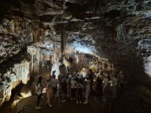 Naše prvo odredište bila je jama Baredine, u blizini mjesta Nova Vas. Ona je geomorfološki spomenik prirode, a obilazak iste trajao je 40 minuta stazom duljine 300 metara koja vodi do podzemnog jezera. U jami smo mogli vidjeti stalagmite i stalaktite, a posebno je zanimljiv bio susret s Čovječjom ribicom.