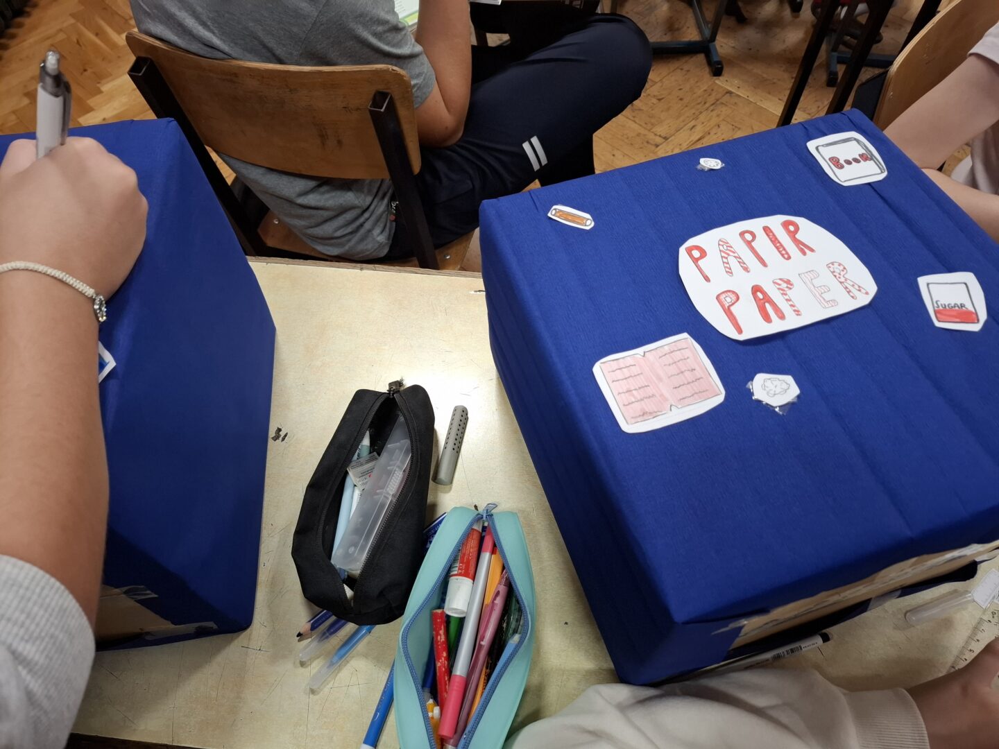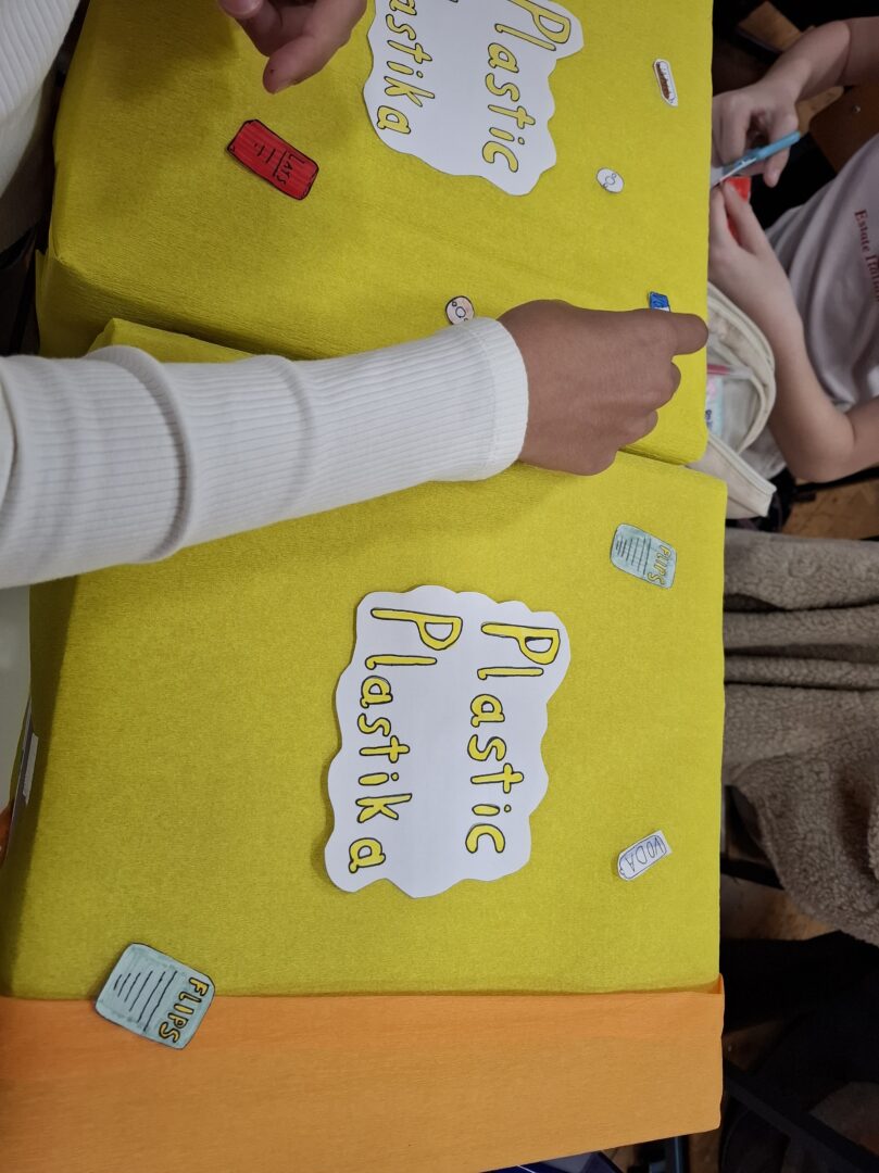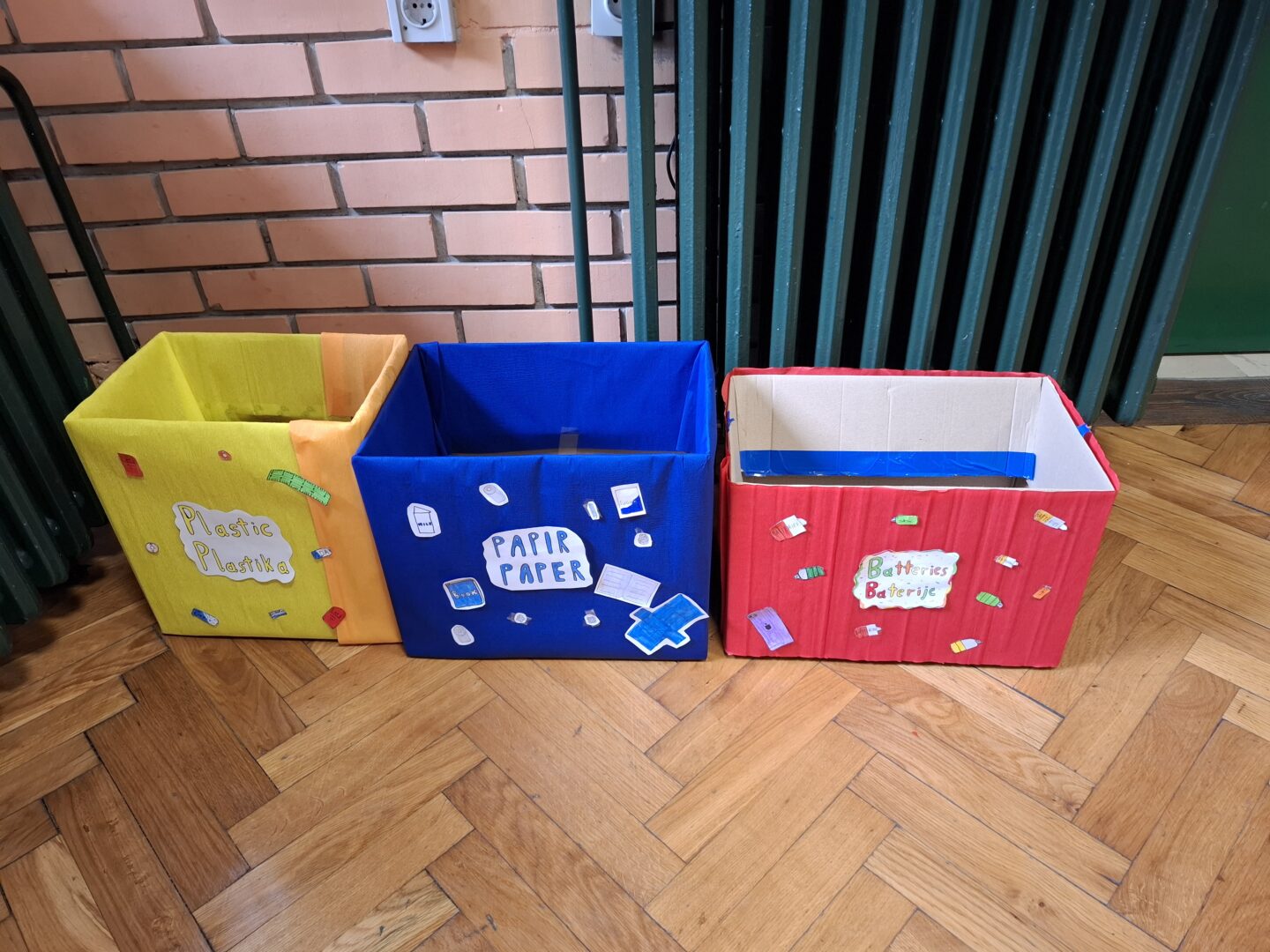 Od rujna, nakon kratke pauze zbog ljetnih školskih praznika, nastavili smo rad na eTwinning projektu „Zero Waste”. Učenice su marljivo izradile kutije za reciklažu od starih kutija koje su nam preostale od udžbenika i bilježnica koje su stigle na adresu škole. U pravo vrijeme, jer su nam bile potrebne kutije za reciklažu. Kutije su obložile krep papirom u bojama, ovisno koju vrstu otpada je potrebno ubaciti. Naši učenici najviše imaju otpad od papira, plastike i pokoju bateriju, te smo i izradili te kutije. Na kutije su ručno ispisali nazive na hrvatskom i engleskom i nacrtali primjere otpada koji spada u koju kutiju. Kutije smo smjestili u učionice engleskog jezika i biologije i kemije. Na ovaj način se nadamo potaknuti sve učenike koji ulaze u ove dvije učionice da odvajaju otpad i time pridonesu „Zero waste” filozofiji.
