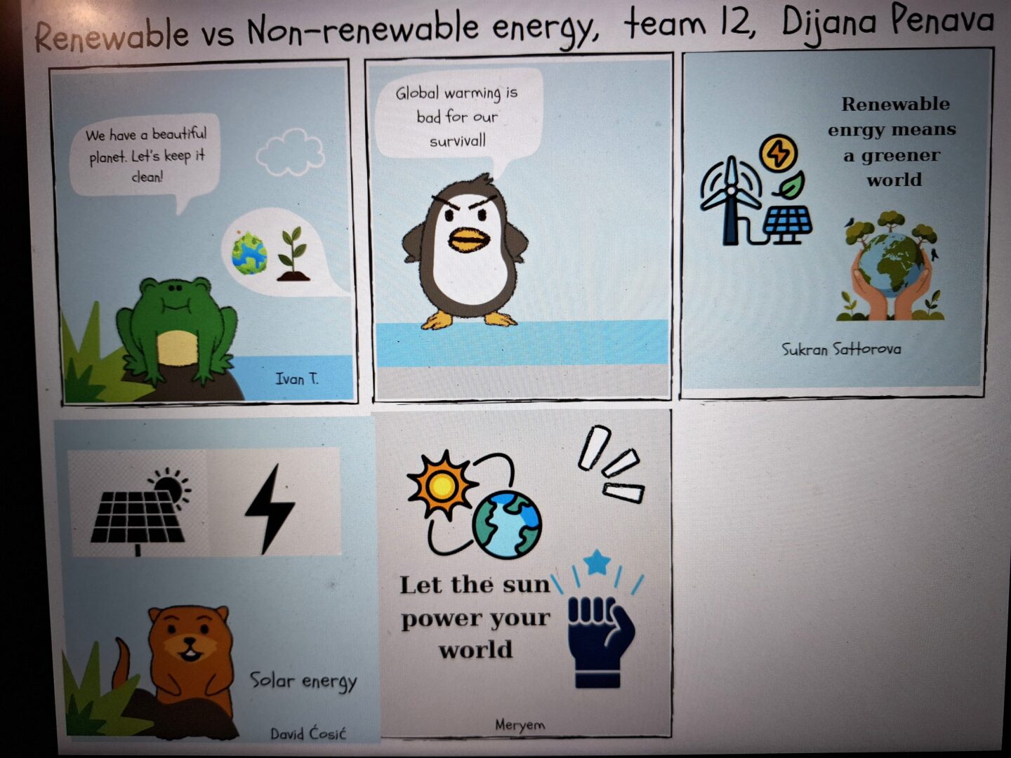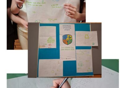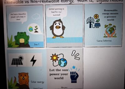 U veljači smo se fokusirali na kreativnost, suradnju i održivi razvoj. Učenici su podijeljeni u mješovite timove s učenicima iz drugih škola i država, zajednički su surađivali u alatu Canva u izradi stripa sa rebusima, a neke od tema su uključivale: čistu voda i vodeni ciklus, obnovljivu energiju, recikliranje, klimatske promjene, zagađenje, zero waste stilove života, zagađenje vode, održivu hrana, obnovljivu i neobnovljivu energija i slično. Završeni stripovi bit će objavljeni na Wakeletu.
