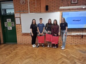 Na kraju radionice, stigle su i zaslužene nagrade za pobjednike državnog natjecanja- online kviza udruge „Štedopis” Klaru Kristović, Viktoriju Jergović i Gabrijela Subičana – pametni satovi i poklon paket Addiko banke.
