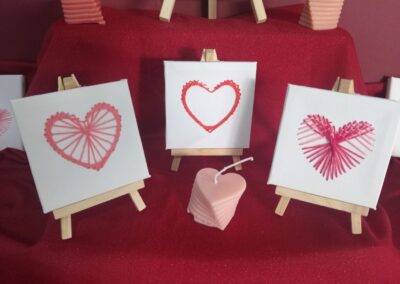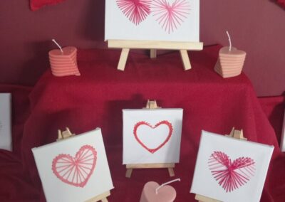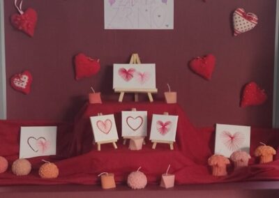 prepoznatljivim valentinovskim bojama – crvenoj, ružičastoj i bijeloj. U ponudi su bile mirisne svijeće, dekoracije i ukrasi u obliku srca te drugi mali pokloni koje su naši zadrugari izrađivali s puno truda i mašte.