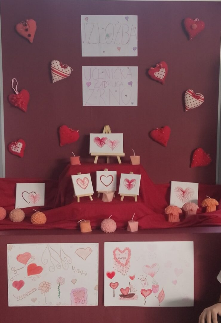 Povodom Valentinova učenici Učeničke zadruge „Zrno“ pripremili su prigodnu izložbu u