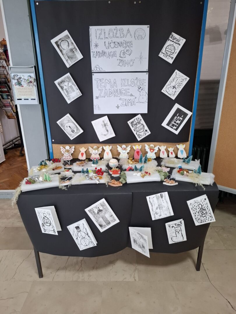 Izložba radova Učeničke zadruge „Zrno“ održana je 22.12. u holu škole i unijela je posebno božićno ozračje među učenike, roditelje i mještane. Predstavljeni su ručno izrađeni ukrasni predmeti koji mogu upotpuniti svaki dom te ga učiniti toplijim, ljepšim i ispunjenim blagdanskim mirom. Sve što je bilo izloženo bilo je unikatno – nastalo kao dječji ručni rad, uz puno truda, strpljenja i pažnje na detalje.