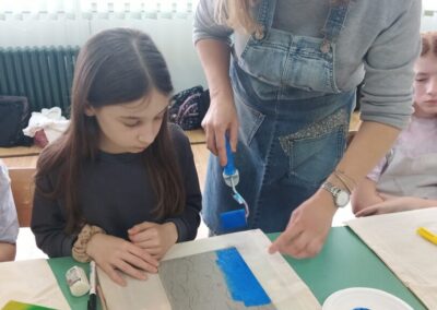 Nakon uvodnog dijela započela je praktična radionica. Učenicama su podijeljene podloge na kojima su najprije izrađivale vlastite uzorke. Tema nije bila zadana, pa je do izražaja došla kreativnost i individualnost svake učenice. Boje su također birale samostalno, kombinirajući ih prema vlastitim idejama.