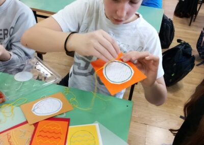 Kroz vlastito isprobavanje i eksperimentiranje, učenici su naučili kako oblikovati smjesu, kontrolirati konzistenciju i pravilno sušiti ukrase. Nakon vađenja modela iz kalupa, morali su ih doraditi brusnim papirom kako bi izravnali neravnine i postigli glatku površinu. Ovo iskustveno učenje omogućilo im je da aktivno istražuju, isprobavaju različite pristupe i samostalno dolaze do rješenja.